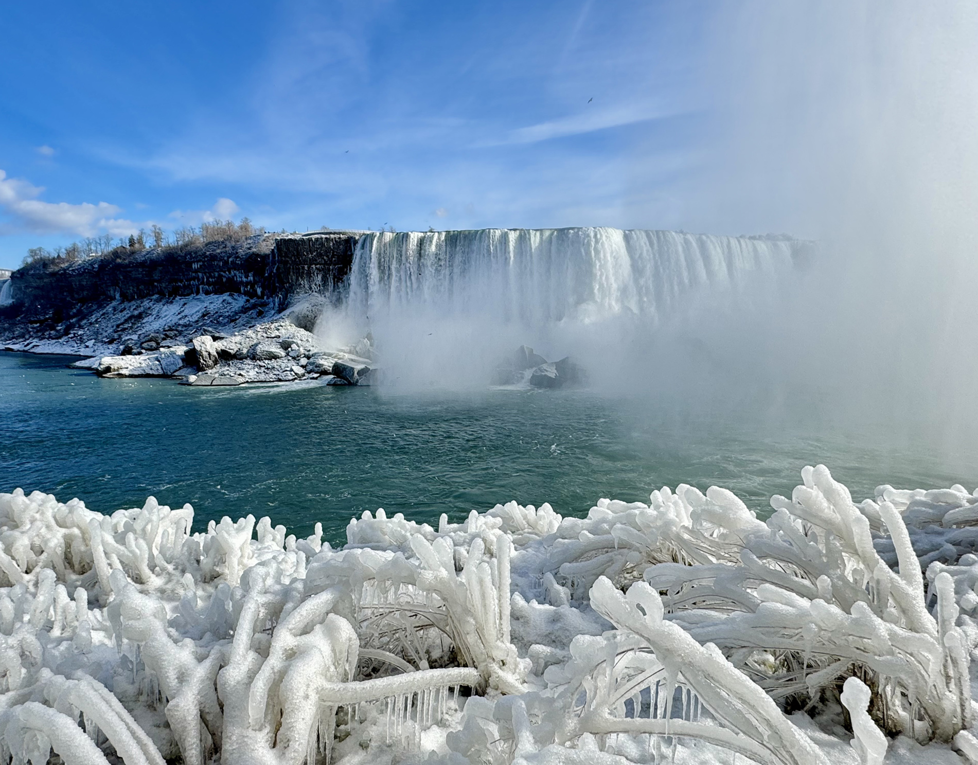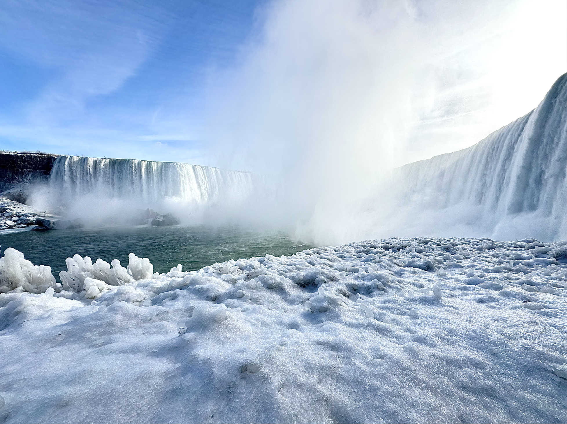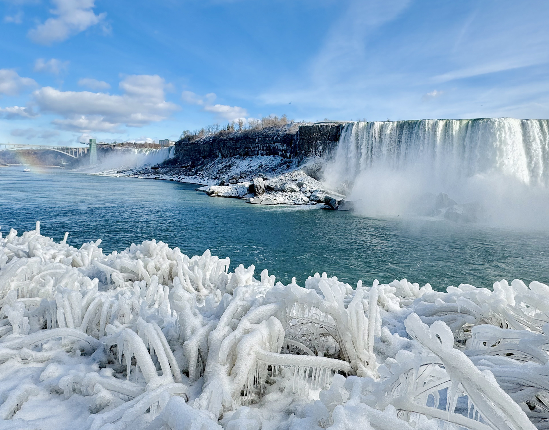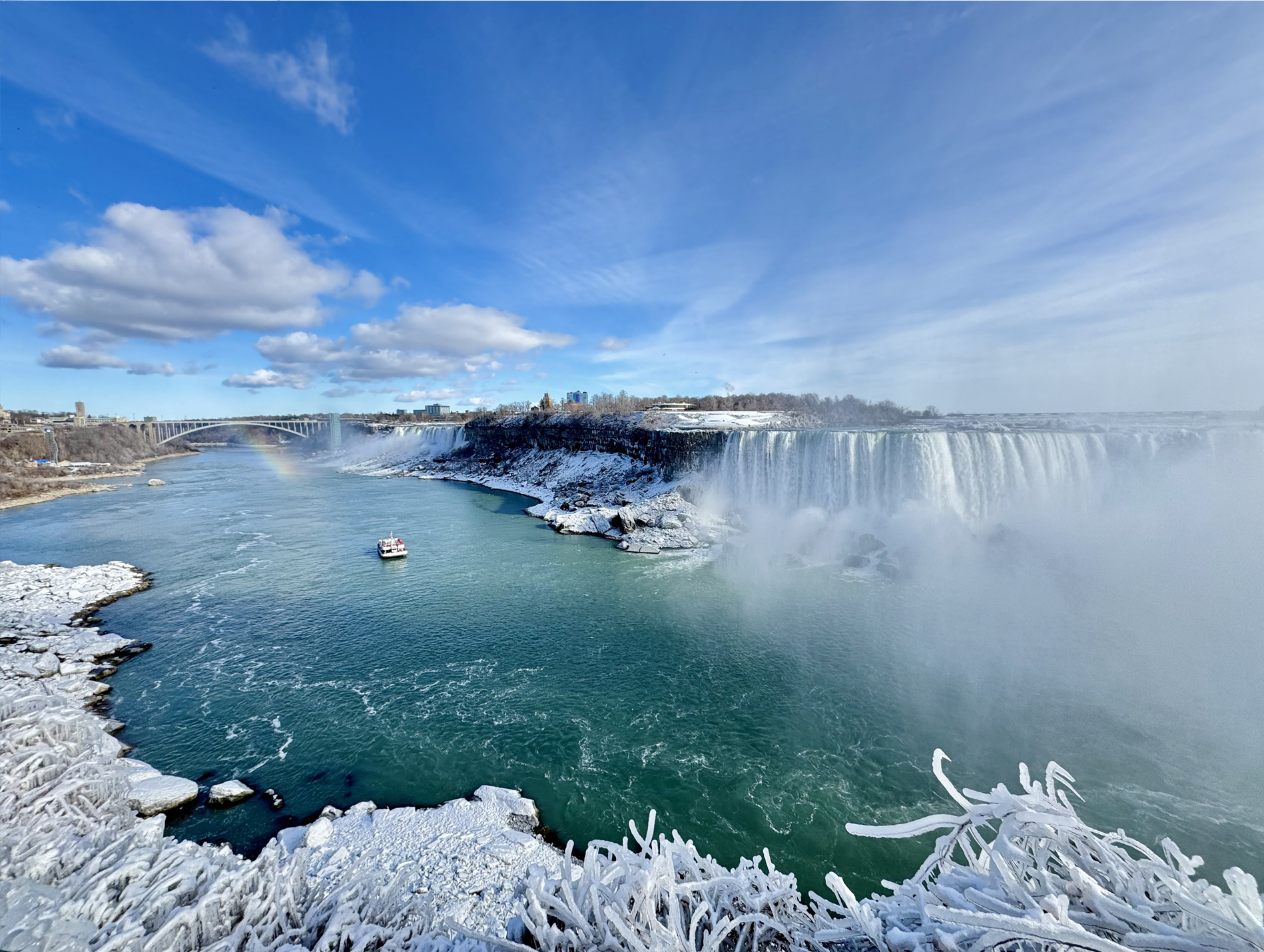 Zu jeder Jahreszeit bieten die Niagarafälle ein besonderes Erlebnis: Im Sommer glitzert das Wasser in der Sonne, im Winter verwandeln Eis und Schnee die Landschaft in eine fast märchenhafte Kulisse.